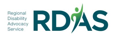 If you prefer you can contact the Regional Disability Advocacy Service (RDAS) for support and assistance with providing feedback on the services you have received.